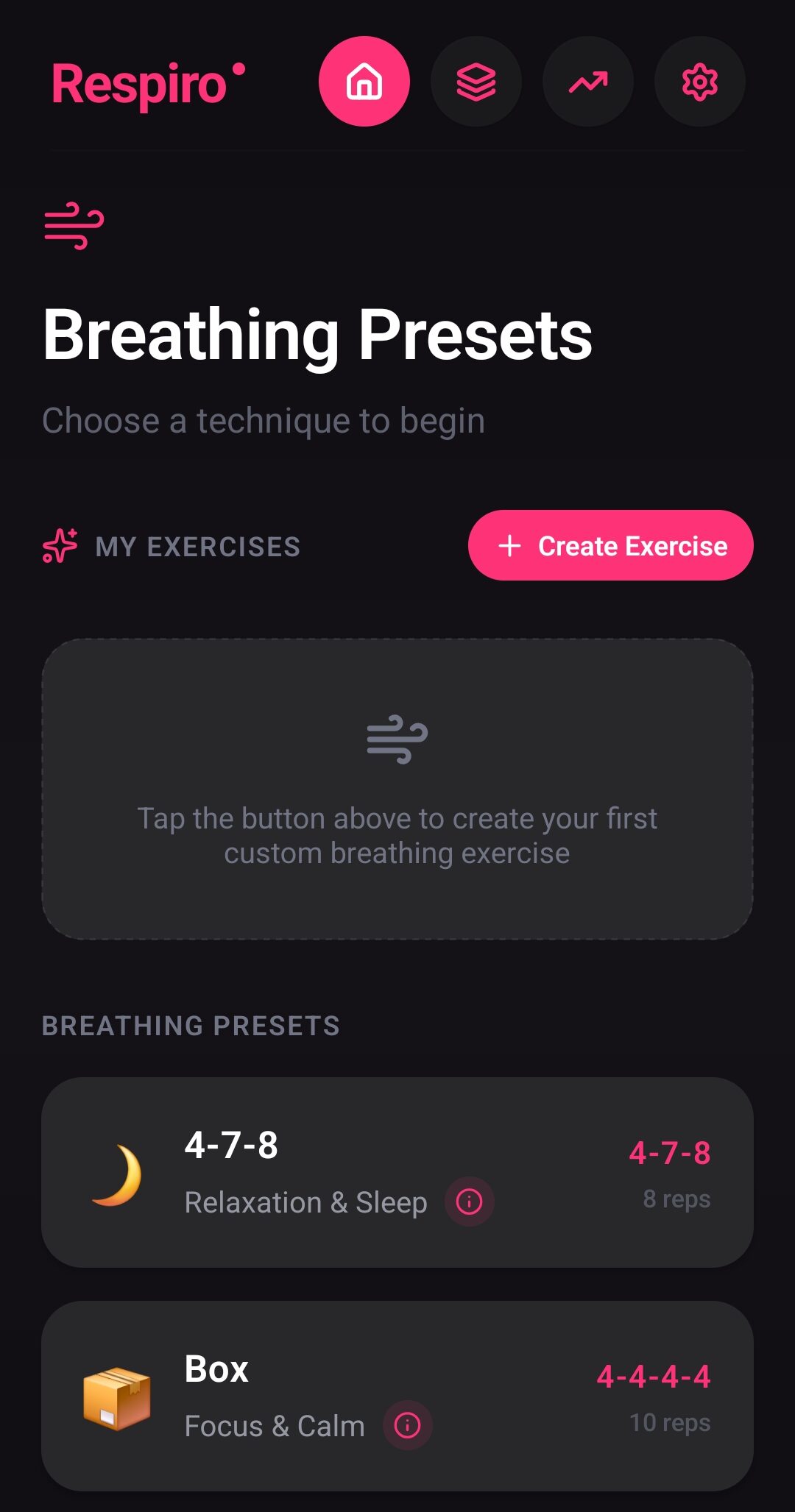 Respiro is designed to help users practice breathing exercises for relaxation, focus, and better health. The app offers guided breathing sessions, customizable patterns, and progress tracking.